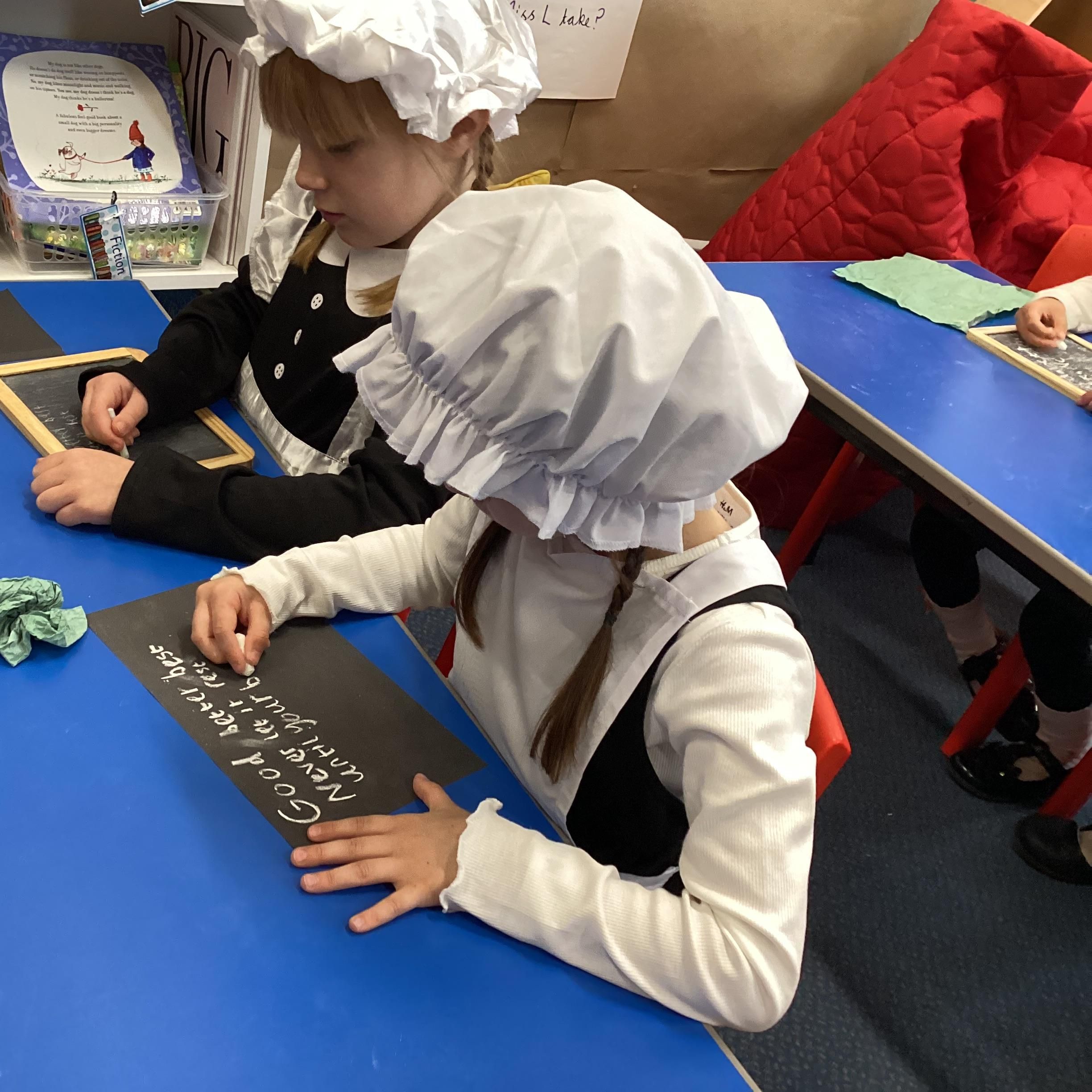 Our school is a red brick, Victorian building. To help us learn about school in this era, we dressed as Victorians and spent a day doing Victorian-inspired lessons.